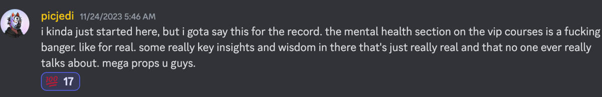 "The mental health section of the course is f**ing banger... no one ever really talks about this"