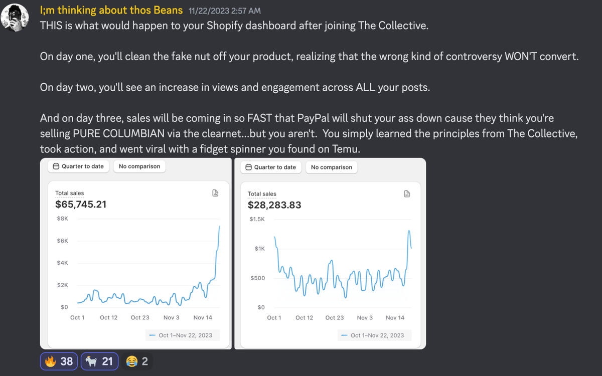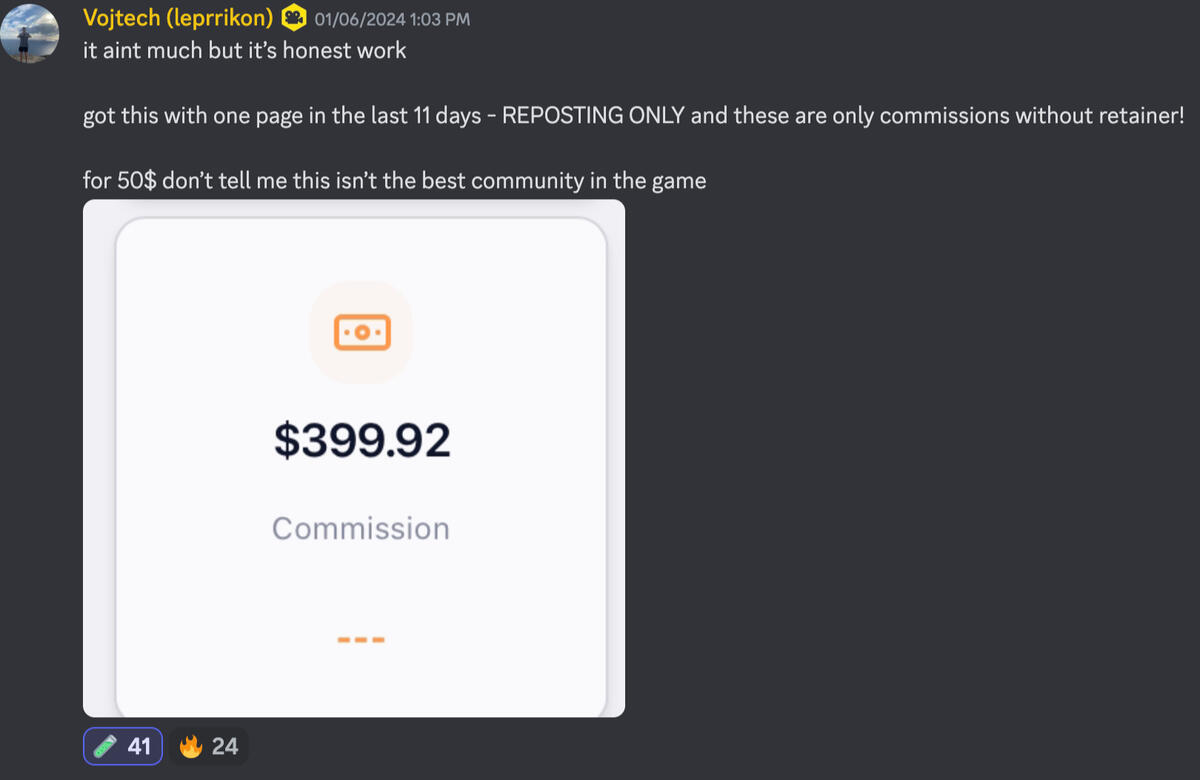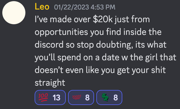 "I've been in 4 discord servers and this is the only server where the owners actually run real f***ing businesses"